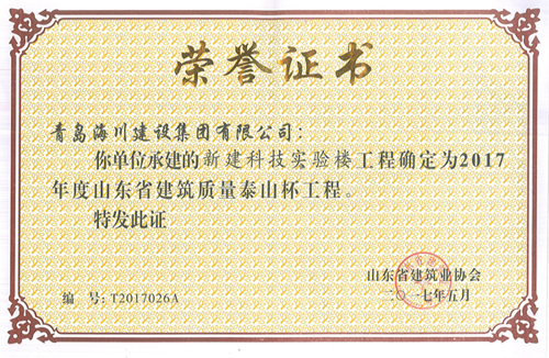 2013年11月20日開工,2016年工程竣工驗收并備案,自開工伊始即確定了爭創(chuàng)“泰山杯”的質(zhì)量目標(biāo),“泰山杯”獎是山東省建筑行業(yè)工程質(zhì)量方面的最高榮譽獎?!疤┥奖豹?省優(yōu)質(zhì)工程)是為貫徹執(zhí)行國家《質(zhì)量振興綱要》和《建設(shè)工程質(zhì)量管理條例》,泰山杯堅持“百年大計、質(zhì)量第一”和“質(zhì)量興業(yè)”的方針,鼓勵建筑施工企業(yè)加強管理,搞好工程質(zhì)量,爭創(chuàng)一流工程,推動山東省工程質(zhì)量水平的普遍提高,在全行業(yè)繼續(xù)開展工程創(chuàng)優(yōu)評獎活動而建立的一個獎項,獎名定為山東省建筑工程質(zhì)量“泰山杯”獎(省優(yōu)質(zhì)工程),簡稱“泰山杯”獎。