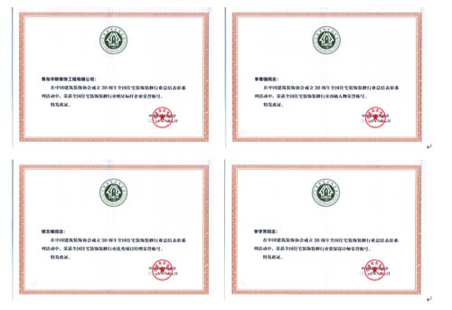 2015年8月7日,中國(guó)建筑裝飾協(xié)會(huì)以中裝協(xié)[2015]60號(hào)文件下發(fā)了關(guān)于《慶祝中國(guó)建筑裝飾協(xié)會(huì)成立30周年全國(guó)住宅裝飾裝修行業(yè)總結(jié)表彰系列活動(dòng)的表彰決定》,華聯(lián)公司榮獲四項(xiàng)國(guó)家級(jí)榮譽(yù)稱號(hào)——青島華聯(lián)裝飾工程有限公司獲“全國(guó)住宅裝飾裝修行業(yè)明星標(biāo)桿企業(yè)”榮譽(yù)稱號(hào),公司總經(jīng)理李尊強(qiáng)獲“全國(guó)住宅裝飾裝修行業(yè)功勛人物”,項(xiàng)目經(jīng)理邢文峰獲“全國(guó)住宅裝飾裝修行業(yè)優(yōu)秀項(xiàng)目經(jīng)理”,設(shè)計(jì)院院長(zhǎng)李學(xué)芳獲“全國(guó)住宅裝飾裝修行業(yè)資深設(shè)計(jì)師”。