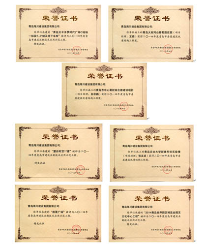 最近,公司從市城鄉(xiāng)建委建管局領回七項榮譽證書,其中三項“青島市房屋建筑優(yōu)質結構工程獎”,分別是:三分公司施工的青島大好河山葡萄酒莊園項目和青島市中心聾校綜合樓建設項目;七分公司施工的青島農(nóng)業(yè)大學新建科技實驗樓工程。四項“青島市建筑業(yè)新技術應用示范工程”分別是:一分公司施工的凱景廣場工程和慧谷時空1#樓工程;四分公司施工的2014青島世界園藝博覽會園藝文化中心工程;六分公司施工的青島太平洋夢時代廣場C地塊一標段1-3#樓及地下車庫工程。