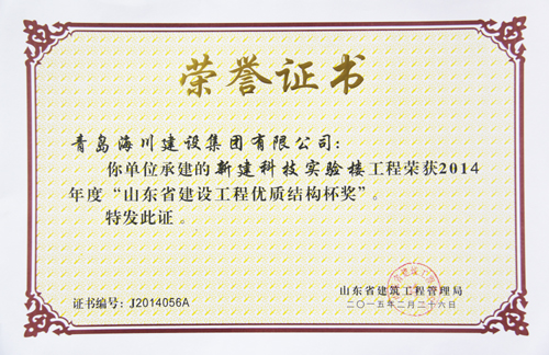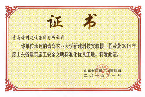 最近,七分公司青島農(nóng)業(yè)大學(xué)新建科技實(shí)驗(yàn)樓工程先后從山東省建筑工程管理局捧回了分別于2015年一月和二月頒發(fā)的兩項(xiàng)省級榮譽(yù)證書——榮獲“2014年度山東省建筑施工安全文明標(biāo)準(zhǔn)化優(yōu)良工地”和榮獲“2014年度山東省優(yōu)質(zhì)結(jié)構(gòu)杯獎”。消息傳到工地,大家歡欣鼓舞,一年多的努力終于結(jié)出了豐碩的成果。