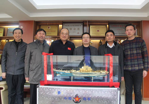 海川集團(tuán)與72695部隊(duì)簽訂軍民共建協(xié)議已有10個(gè)年頭。3月11日下午,在公司與軍民共建單位72695部隊(duì)進(jìn)行的一次聯(lián)誼活動(dòng)中,部隊(duì)贈(zèng)送給公司一艘“遼寧艦”航母模型,寓意祝愿企業(yè)做大做強(qiáng)。吳鑫董事長(zhǎng)和仇建軍總裁在公司榮譽(yù)室接受贈(zèng)品航模,并與身著便裝的周愛民政委(右三)和政治處李文清主任(右二)合影。
